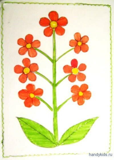 Проведём комплексное занятие по развитию рук и глазомера -совместим раскраску и аппликацию в одной картинке "Цветы".